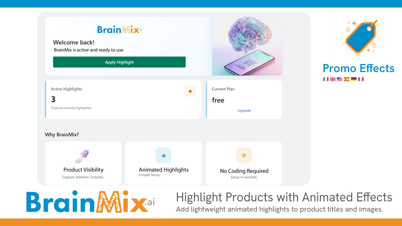 BrainMix Promo Effects è una soluzione intelligente per chi vuole migliorare la visibilità dei prodotti su Shopify senza sacrificare le performance.